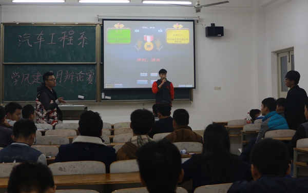比赛共分4场,每场比赛由辩手辩论、观众提问和评委评判三个环节组成。4场比赛的正方分别为:车辆1151、汽服1152、车辆1155和车辆1156,他们的观点是“青年成才的关键是自身能力”,相对应的反方分别是:车辆1153、汽服1151、车辆1152和车辆1154,他们的观点是“青年成才的关键是外部机遇”。比赛现场,气氛紧张热烈,双方辩手旁征博引,你来我往,侃侃而谈。辩手们自由辩论时将比赛气氛活跃起来,现场气氛迅速升温,精彩不停,掌声不断。在观众提问环节,观赛的同学们热情参与,积极提问,将现场气氛再次推向高潮。最后,评委对辩手们在辩论时的用词,仪态和辩论方式等进行了评价,在肯定同学们的优秀表现时也指出了不足,希望同学们在以后的比赛中能够更加注意自己的措辞和肢体语言。经过激烈的比赛和评委们公正的评判,最终车辆1151班、汽服152班、车辆1156班、车辆1154班赢得了胜利。