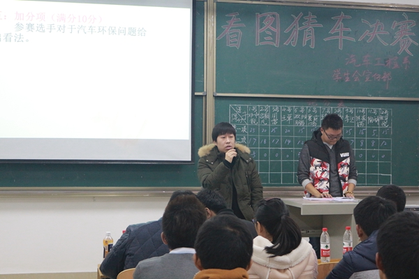 11月19日18:30,由汽车工程系承办的汽车博览会——看图猜车决赛在2教208举行。汽车工程系团总支书记易成老师、团总支学生副书记潘越、各系学生会主席出席了本次活动。
