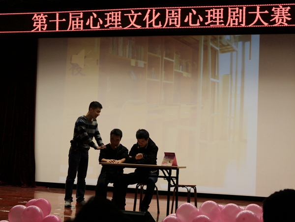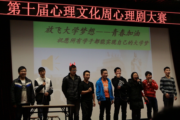 比赛之前,我系心协成员积极准备,为了让参赛剧《我的大学》达到更好的舞台效果,多次对剧本剧情做出商讨和修改,并定期组织演员们进行排练。剧中主角“赵向阳”虽努力学习却始终无法取得理想的成绩,在经过对学习的困惑,外界的诱惑和自身的纠结一系列问题后,他同心理委员和班长进行了谈话,最终坚定了努力学习的决心,并在最后大声喊出:“要为自己而学,为成为真正的大学生而学,为自己的未来而学”。最终该剧在同学们精彩的表演下,赢得了满场掌声,并获得大赛三等奖。