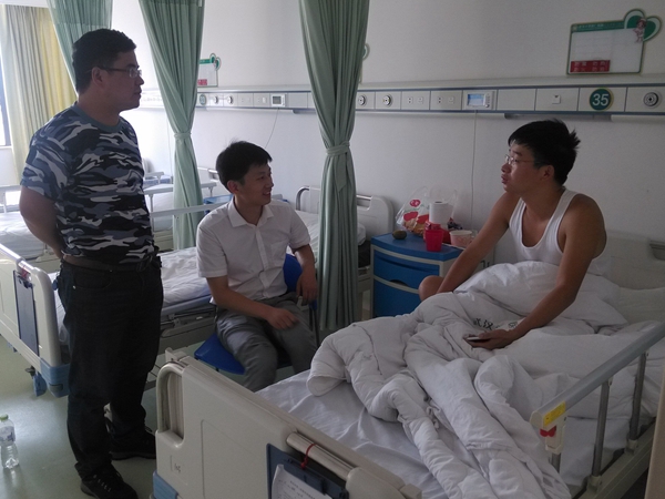 得知陈祥生病住院的消息后,汽车工程系党总支书记刘源、学工办主任郭杰、新生辅导员张青老师,随即前往武汉市第三医院看望。老师们走进陈祥所在病房时,外地的父母还没有赶来,姑父正在悉心照顾,见到老师前来看望,陈祥姑父急忙表示感谢。郭主任和张老师与陈祥进行了亲切的交谈,深入了解他的病情、身体恢复及生活情况,鼓舞他保持乐观的心态,克服困难积极配合医院治疗,战胜病魔,尽快康复,并带去了全系师生对他的祝福。