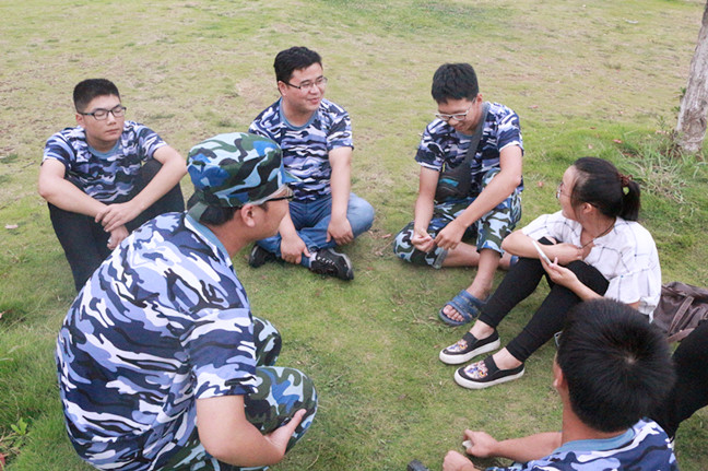 张老师以朋友的身份和伤病员围坐在一起,换上了曾经熟悉的迷彩服,在烈日暴晒下,和同学们一样和伤病员一起聊天扯家常。聊天中张老师亲切的问候了几位军训期间伤病的同学身体康复的怎么样了,开学到现在遇到的问题,和学生自己的特长及今后发展个的目标,同学都做出了详细的回答,对于同学的问题张老师给出了些许建议。整个聊天过程和谐热闹,同学们完全没有因张老师的身份所拘谨。