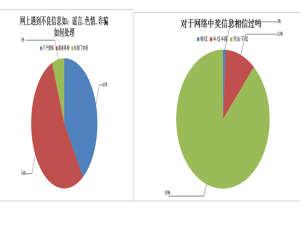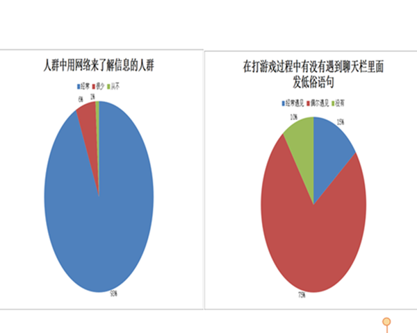 车辆1145团支部通过对调查问卷的汇总得到:参与调查的人群中有75%的受访者表示在打游戏过程中偶尔会遇到聊天栏里面出现低俗语句的情况;有68%的人身边出现过网络受骗案例;在青年人群中93%的人会通过网络渠道来了解信息,但至少有75%的人有过受骗的经历;令人意外的是,78%的调查对象对低俗信息并不反感,还有34%的人认为网络低俗信息挺有意思。由调查数据可观察出中国网络现状并不可观,网络不良现象不在少数。作为新时代的团员,我们有义务为改变中国网络现状做出应有的努力。