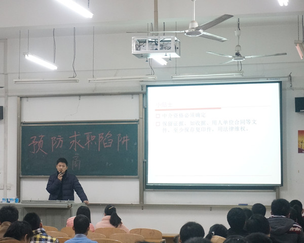 就业是毕业生踏入社会的重要一步,更是毕业后实现自我价值和社会价值的第一步。此次讲座深化了同学们规避就业风险的意识,对同学们跳出就业陷阱具有指导意义,同时也为同学们成功就业增加了有力砝码。