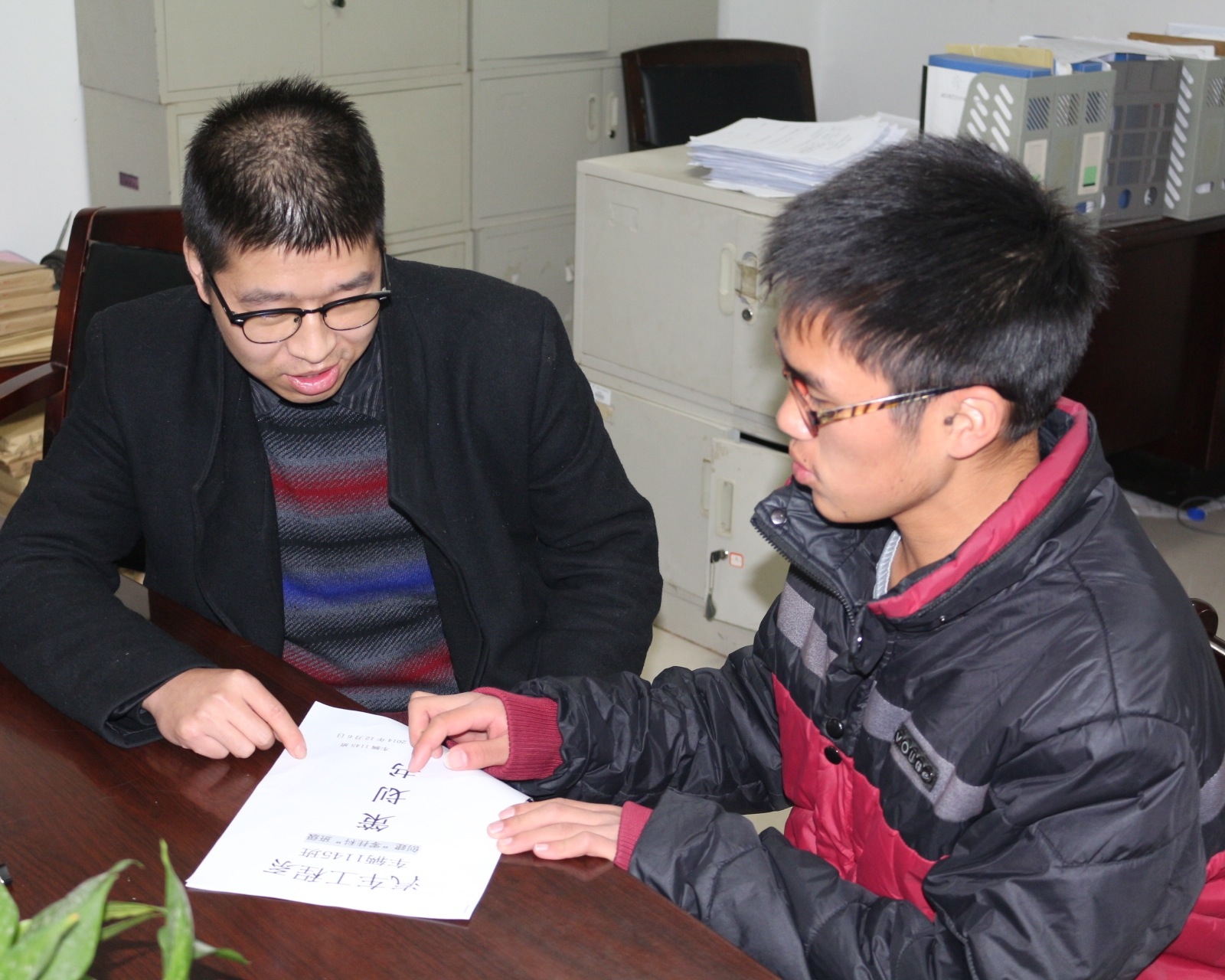 如何把无形的思想工作做到实处?我系13级辅导员张谈起了他的“秘密武器”——晚间深入宿舍。晚上深入宿舍,不仅可以了解学生的课余动向,而且能够观察13级学生在宿舍的所作所为,更能够与学生拉近距离,谈爱好,聊理想,是辅导员了解学生思想状况的一种有效方法。由于13级情况特殊,张老师刚来时该年级的到课率不高,为此他制定了13级学生考勤从表,通过发动班委,对经常不上课的同学进行监督,并将考勤总表与平时成绩挂钩,使13级学生重视自我学习成绩,到课率有了明显提高。