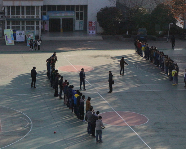 2014年12月19日早8:30,我系13级学生齐聚一食堂门口篮球场,等待形式与政策课外实践“盲人方阵”活动的开始。