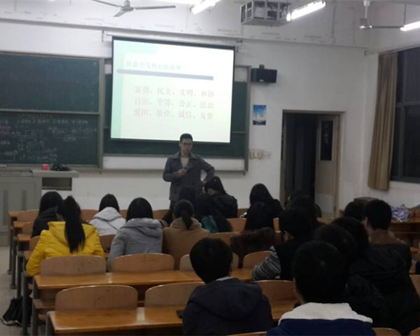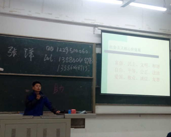 在确保每名学生知晓社会主义核心价值观内容后,辅导员们从以下5点向同学们发出倡议:一是,增强责任感,做文明礼仪的传播者,人人知晓并自觉践行社会主义核心价值观;二是,当好示范员,做遵守公德的先行者。自觉带头遵守公共秩序,讲究公共卫生,用大学培养的文明素养影响周边人群,为社会树立文明、守序、尚礼的榜样;三是,全员齐参与,做奉献互助的志愿者;四是,从自己做起,做节俭养德的示范者;五是,携手共创建,做城市环境的守护者。
