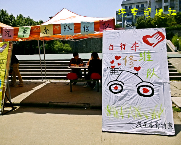 2014年5月6日,在我校一食堂门前,由汽车工程系青协自行车维修队开展的面向全院同学自行车志愿服务活动再次开动了。 今天一早自行车维修队的同学们就来到一食堂门前搭建起了帐篷摆上了宣传牌。同学们的爱车在活动现场可以的到及时的维修,不仅如此,本次活动还有调查问卷环节,针对自行车的一些基本性能特征和维修保养问题进行了调查。活动中,一位负责人向记者说:“经过此次活动我们能很清楚的了解到,在同学们之间骑车出行是非常流行非常平常的事情,但是很多同学都只是停留在简单的喜欢程度上。他们缺少骑行时需要戴头盔等安全意识,在骑行的过程中对于自行车出现的简单故障也无法解决,甚至有些同学都完全没有考虑过这些问题。通过这次的问卷调查也凸显出很多隐患,我们不仅要调动大家绿色出行的积极性,更要完善他们这方面的知识。” 骑自行车出行是目前大学生之间比较流行的一种娱乐和消遣的方式,也是目前环保理念所提倡的。与此同时,希望同学们能加强安全意识,给自己的出行加上安全锁。