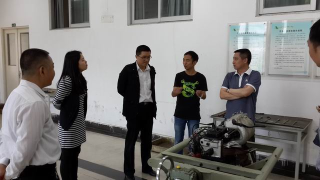 唐主任首先就我系师生情况、培养计划、教学安排、学生就业等方面作了简要介绍,随后带领李主任和宋经理到汽车实验楼参观,实验中心张波老师和张洲老师详细介绍了我系实验中心建设情况和学生实践教学的实施细节。