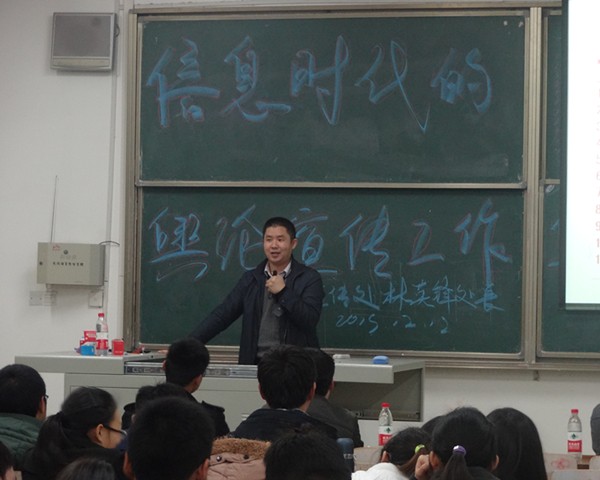 12月12日晚6:30,汽车工程系在3-108开展了以“信息时代的舆论宣传工作”为主题的学习讲座,主讲人为武汉理工大学华夏学院宣传处处长林英锋,讲座由汽车工程系党总支书记刘源主持。