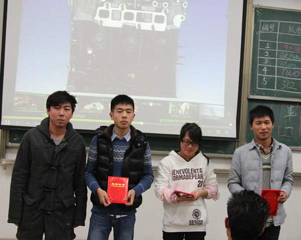 为提高大学生综合素质,培养敏捷的思辨能力营造理论讨论氛围,拓展大学生视野,我系特别举办了此次汽车知识竞赛。经过多轮预赛,最终有“布加迪”、“two”、“驶向未来”、“312”、“Mars”这五个精英队顺利进入决赛。决赛分为必答题、抢答题、现场互动、心有灵犀猜车标汽车涂鸦、才艺展示五个环节。最终经过五轮的角逐“312”获得冠军,“布加迪”队获亚军,驶向未来队季军。最后汽车工程系主席为获奖队伍颁奖。