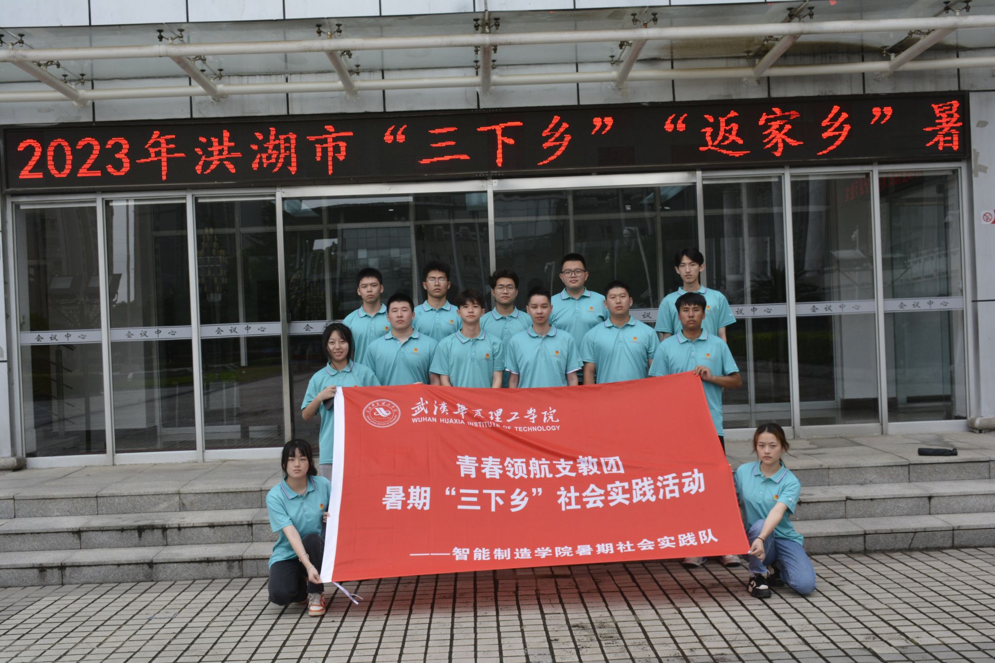 7月14日,武汉华夏理工学院青春领航支教团全体志愿者参加了洪湖市2023年“三下乡”暑期社会实践活动开班仪式并前往湘鄂西苏区革命烈士陵园和当地优秀企业参观活动。