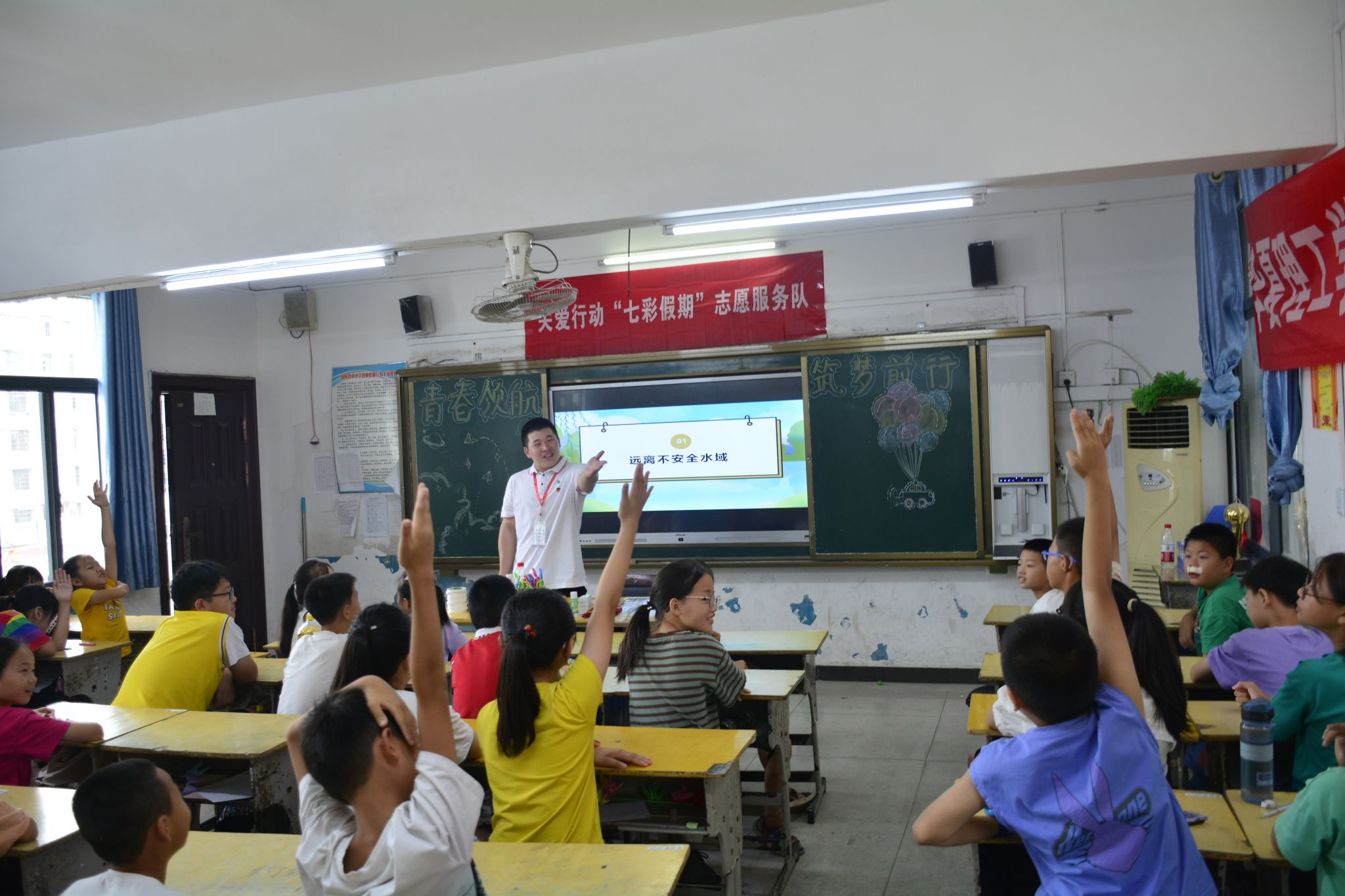 为进一步加强校园安全教育,预防和减少溺水事故发生,提高学生自救互救能力,切实保障学生生命安全,青春领航支教团成员程骏豪为35名同学全面细致的讲解了防溺水安全教育,教导同学生命的珍贵,安全教育的重要性,掌握基本防溺水知识和自救技能,呼吁同学们要提高警惕,安全无小事,要时刻做好安全防护措施。