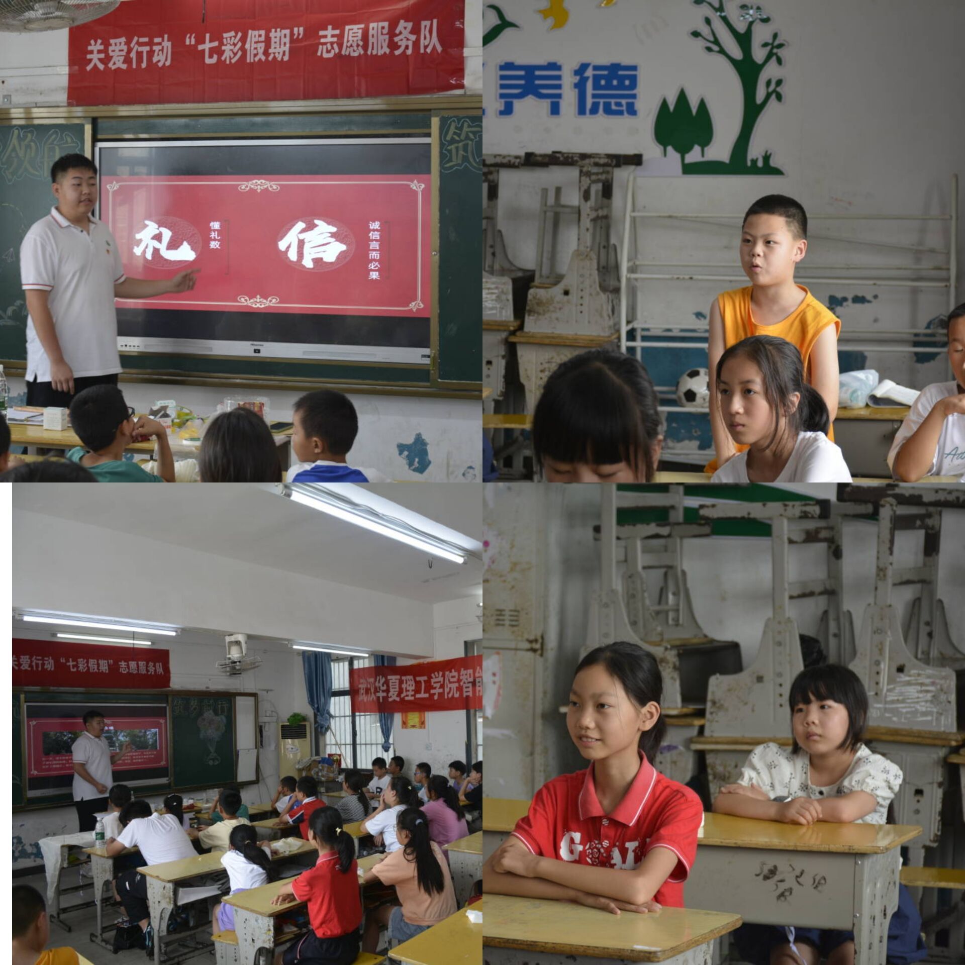 在思想品德课中,青春领航支教团志愿者李梦豪大力宣扬中华民族传统美德,将中华传统美德中的仁、义、礼、智、信等传统美德结合生活中的实际问题让同学们结合自身情况去践行落实到位。通过他们的努力和关怀,孩子们将能够更好地面对生活的挑战,做一个有道德、有担当的新时代少年。
