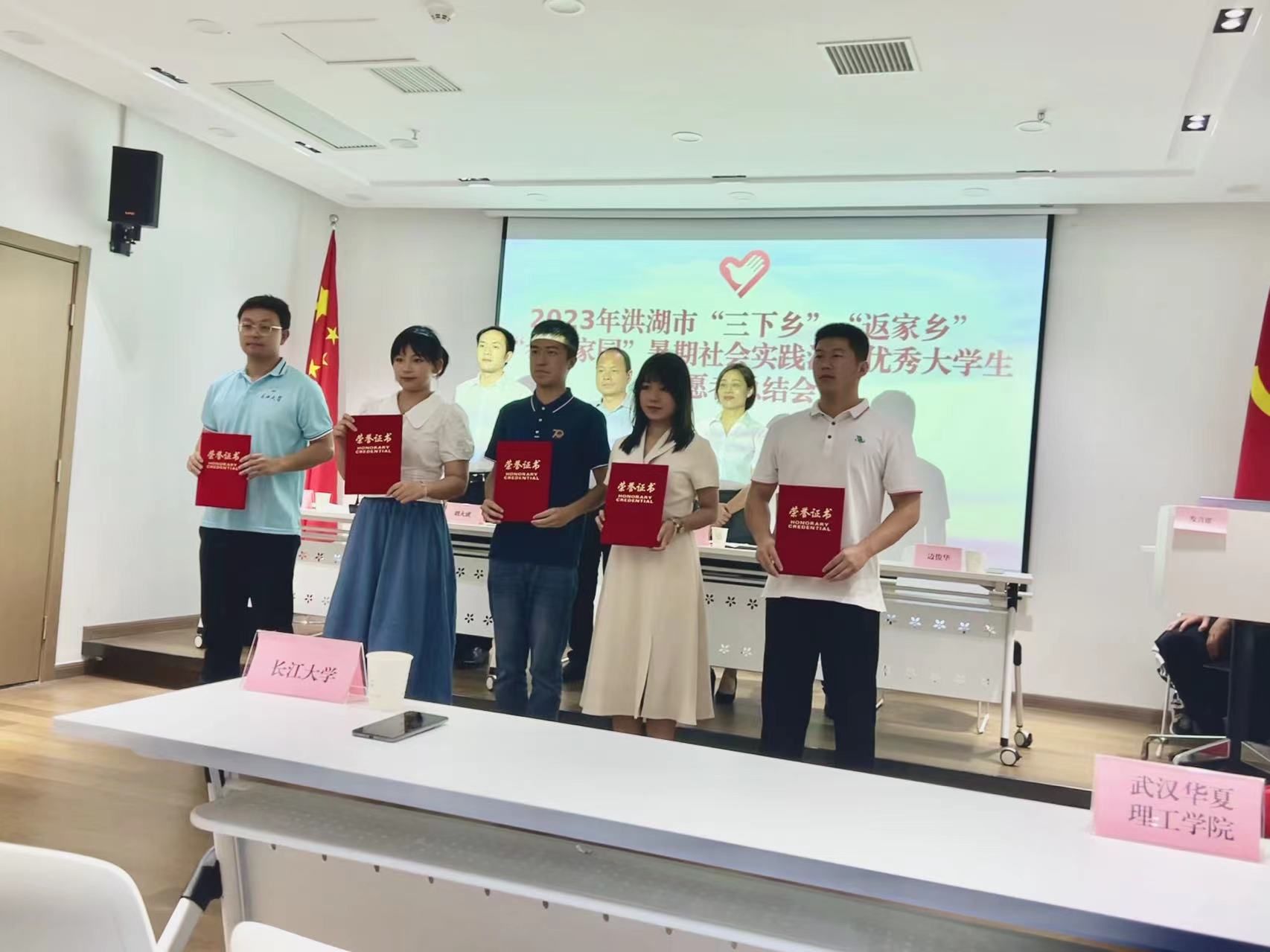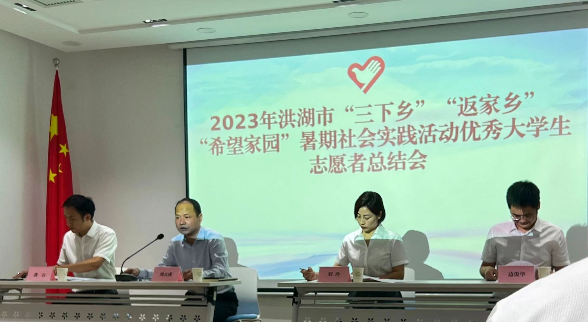 9月5日上午11点,智能制造学院青春领航支教团学生代表赴洪湖市参加暑期社会实践活动优秀大学生志愿者总结会,此次总结会由团洪湖市委书记刘洋主持。参会成员有洪湖市市委宣传部副部长刘大成、团市委书记刘洋、市新时代文明实践指导中心主任刘玲、团市委副书记龚岩、市青年志愿者协会会长边俊华,以及武汉大学、华中科技大学等“三下乡”暑期社会实践队大学生代表、“返家乡”暑期社会实践志愿者代表、“希望家园”暑期托管班志愿者代表。