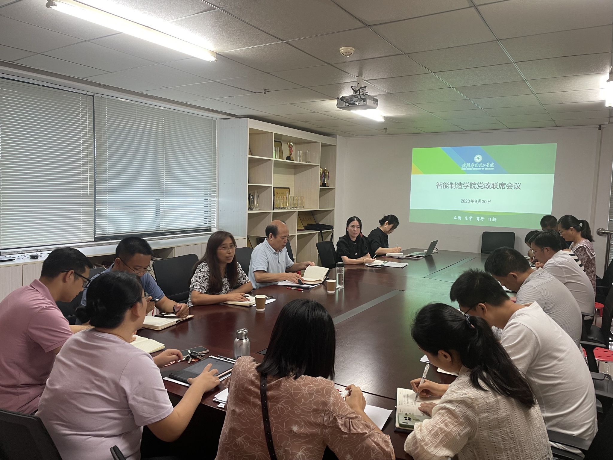9月20日下午,智能制造学院党政联席会议在行政楼0919会议室召开。会议由院长余世浩主持,学院党政领导和各系部负责人参加了会议。