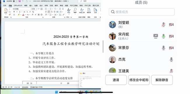 为了更好的开展新学期的教育教学工作,进一步加强教学教研的管理,提高汽服系教育教学质量,确保新学期教学工作的有效开展,8月30日晚上20:30,我院汽车服务工程系召开教研活动线上会议,会议由汽服系主任宋丹妮主持,汽服系全体教师参会。