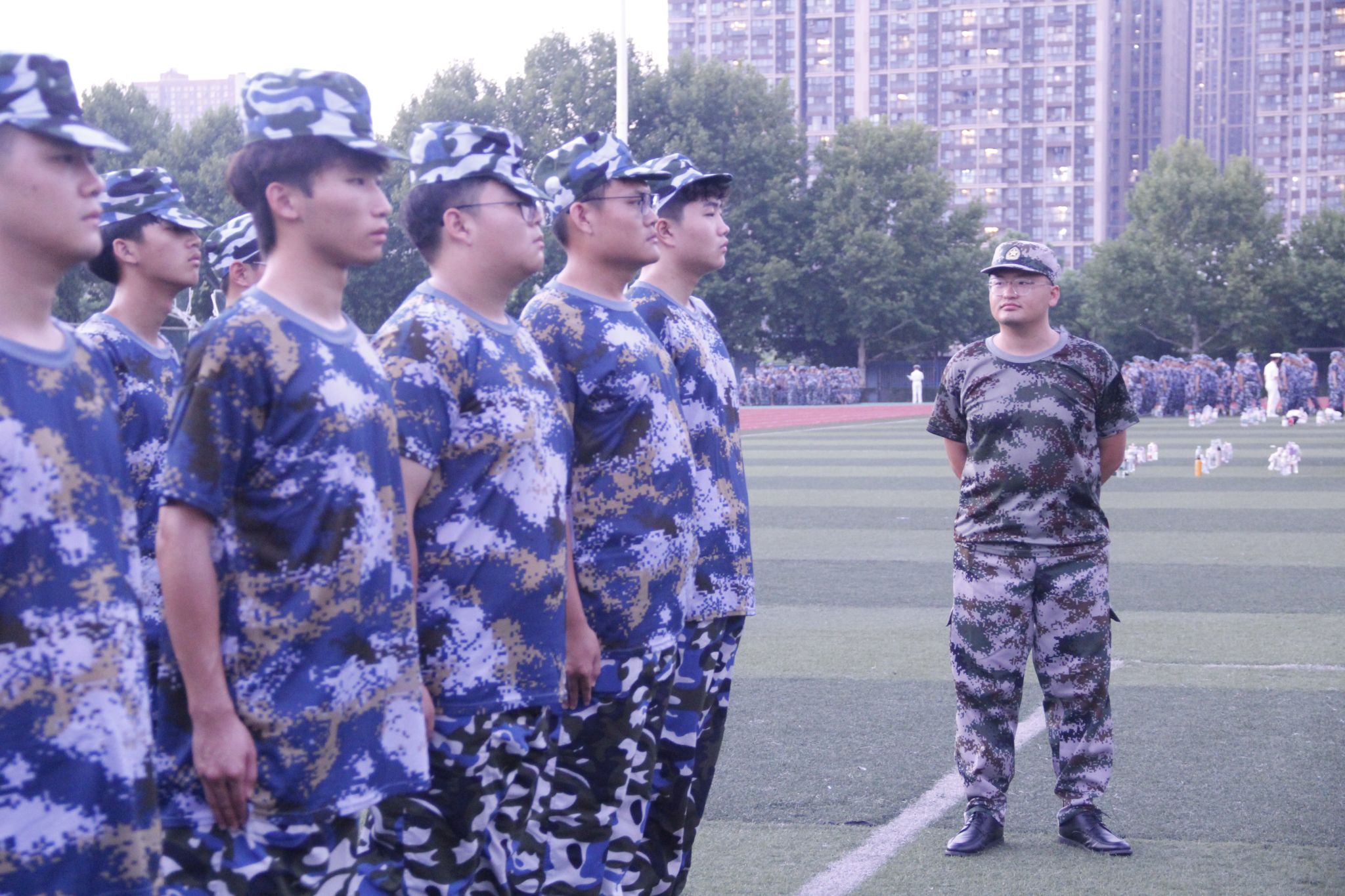随着时间的推移,阳光逐渐强烈,汗水开始顺着同学们的脸颊滑落。但他们的目光依然坚定,身躯纹丝不动,展现出了顽强的毅力和高度的自律,尽管肌肉酸痛、双脚发麻,却没有一人动摇。教官在队伍中穿梭,仔细地纠正着每一个同学的姿势细节。“坚持住,还有最后几分钟!”教官的鼓励让同学们咬紧牙关,继续保持 。