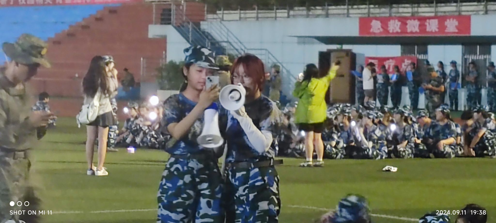 在表演过程中,同学们的掌声、欢呼声此起彼伏,现场气氛热烈非凡。这不仅是一场简单的表演,更是同学们展现自我、释放压力的舞台。教官们也融入其中,和同学们一起欢笑,拉近了彼此之间的距离。