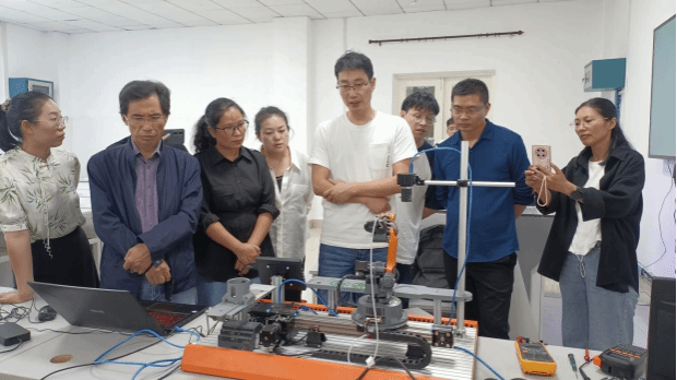 企业技术人员先介绍了实训平台由6自由度的机械臂、机械臂的水平移动机构、并式供料单元、仓储货架、视觉相机、气泵、显示屏、控制器等几部分组成。现场以工业PCB板缺陷检测为例,从硬件和软件两个方面进行培训,重点对PCB板的缺陷检测过程中的视觉识别原理及方法、机械臂的定位、搬运等知识点进行了详细的讲解。在培训的过程中,参与培训的教师结合自身所带的课程或实践教学任务,积极开展教学研讨,拟在该平台完成《计算机视觉与图像处理基础》、《机器视觉及应用》等课程的实验教学,并就图像获取、图像处理、图像分析和图像识别等疑难问题向企业技术人员进行咨询,均得到了有效解答。
