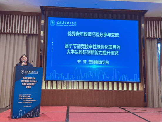 在青年教师交流环节,齐芳老师交流汇报主题为“基于节能竞技车性能优化项目的大学生科研创新能力提升研究”。该项目为2017年校级科研基金项目,已结项。该项目依托于HONDA中国节能竞技大赛,通过在赛事打磨中提升学生设计能力,仿真能力、制作能力等方面。在此过程中,学生的科研能力提升成效显著,学生发表期刊论文一篇,参与校级科研基金项目两项,在3D大赛、三创比赛等多个赛事中多次获得国家级和省级奖项。在这项科研创新项目中,同学们通过动手制作挑战节能的极限。队员们运用已学知识和学习新的知识进行自我创意,设计出世界上独一无二的赛车参与节能竞技大赛,充分发挥个人创作才能和团队合作精神。最后,齐芳老师以2019年节能车参赛花絮视频结束了汇报,再一次让老师们感受到了项目带给学生的成就以及汽车的魅力,收获久久掌声。