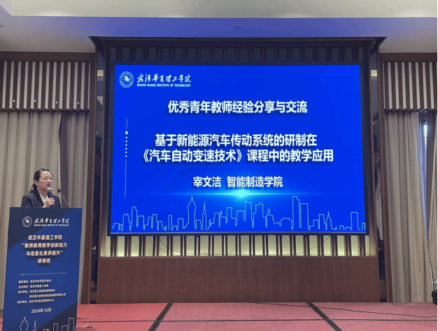 宰文洁老师交流汇报主题为“基于新能源汽车传动系统的研制在《汽车自动变速技术》课程中的教学应用”。该项目为2019年校级科研基金项目,已结项。项目主要通过利用实验室现有资源,开展科研活动,将真实项目带入课堂,以教学为抓手,提升学生设计能力,同时对学生进行选拔,挖掘并培养具有科研潜力和创新思维的学生,参加学科竞赛,获得理想成果后,将成果用于教学活动。在此项目中,发表核心期刊论文一篇,普刊一篇,指导学生进行了新能源汽车多合一电驱动系统虚拟拆装系统开发并运用到教学中,指导学生在3D大赛、机械创新大赛等多个赛事中多次获得国家级和省级奖项,硕果累累。