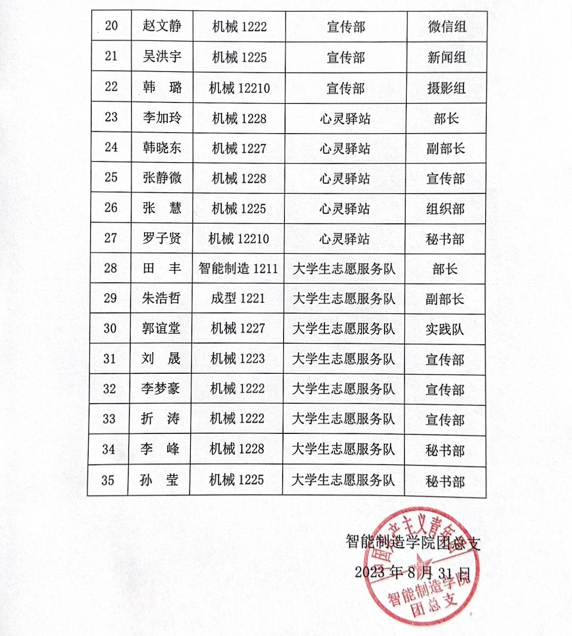 经智能制造学院团总支学生竞聘和各位辅导员的评定,最终确定2023-2024学年智能制造学院团总支任命名单如下:
