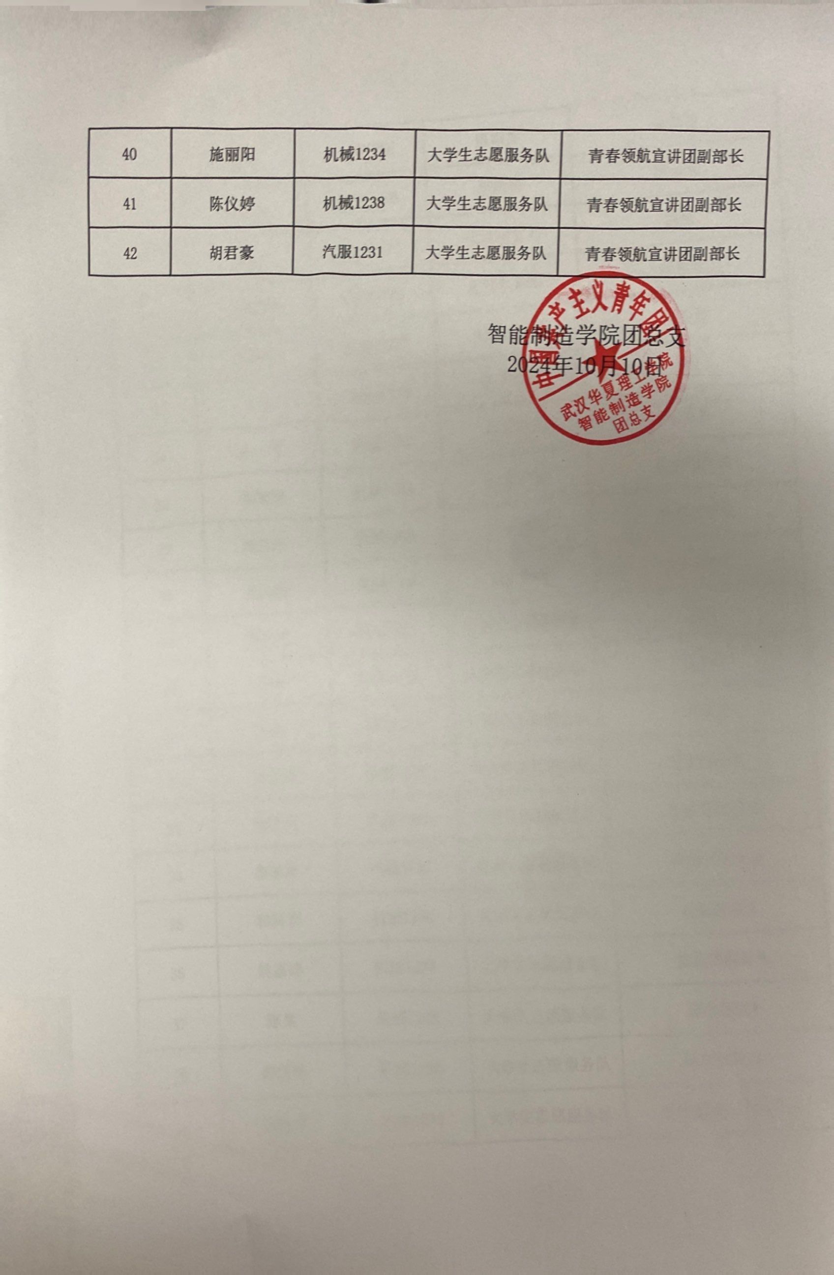 经智能制造学院团总支学生竞聘和各位辅导员的评定,最终确定2024-2025学年智能制造学院团总支任命名单如下: