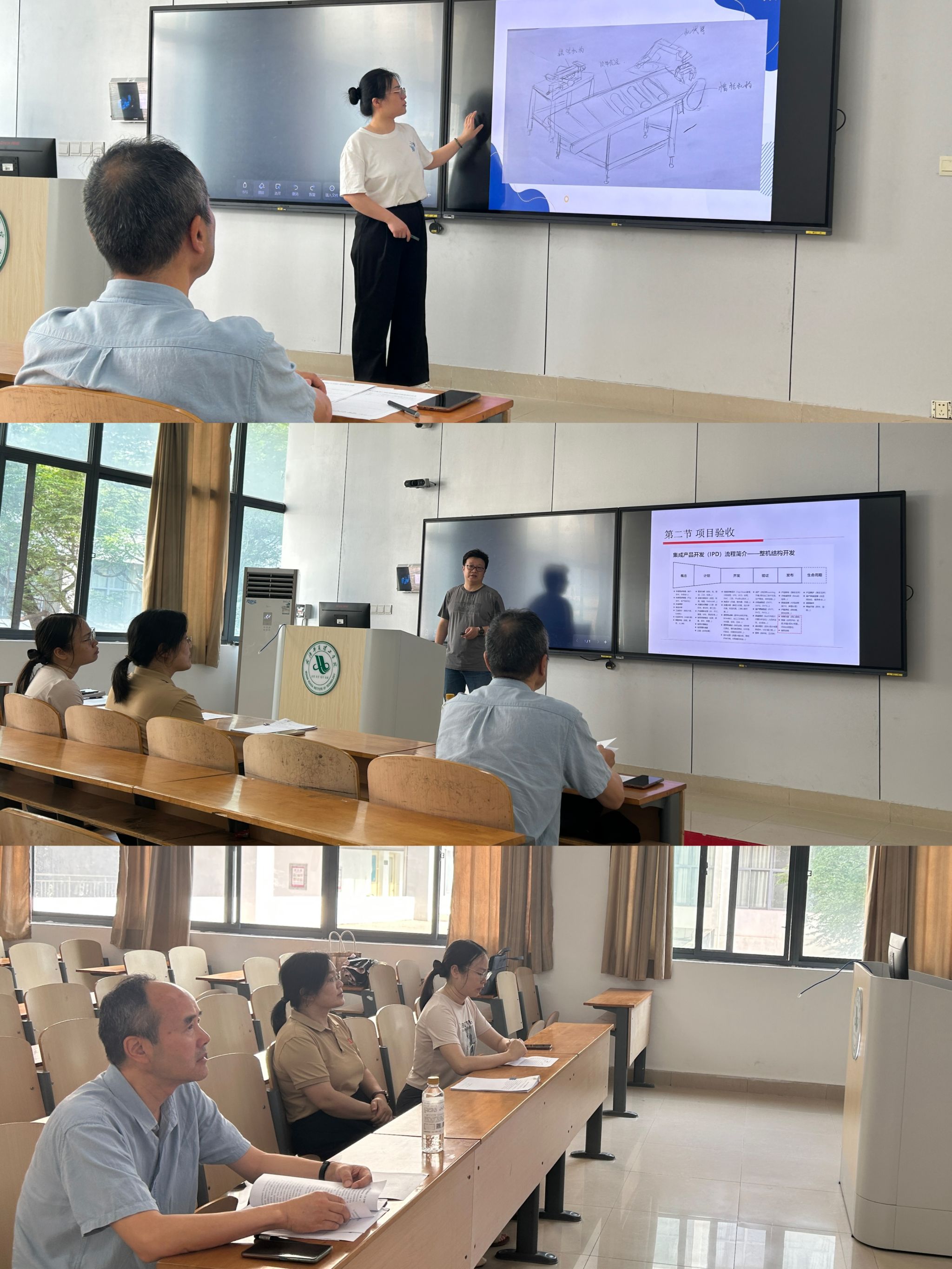 活动伊始,吴卫老师就《产品创新设计与实践》中的“总体装配方法”这一章节率先进行了一堂教学展示,她布置了详细的实践内容,为大家展示了如何在课堂上有效激发学生的思维,并通过互动式教学提高学生的参与感。随后的点评环节中,其他教师也对吴老师的授课方式进行了讨论与交流,提出了许多有益的改进建议,特别是在如何调整授课节奏与课堂管理方面,大家积极发言,分享各自的教学经验和心得。接下来,曾凌峰老师进行了第二轮磨课展示,他的课程《机械工程项目管理》注重知识的连贯性和层次性,通过清晰的框架结构和案例讲解,帮助学生掌握关键知识点。徐汉斌督导结合教学内容和学生需求,提出了如何更好地关注学生个体差异的建议。最后,包显龙老师在金工实训中心进行了第三轮的课程展示,他对《数控机床故障诊断与维修》中的实验部分讲解,并在机床上实际演练——当机床出现故障该如何排查。最后,包老师在总结时还注意融入了“车间安全”等课程思政内容。