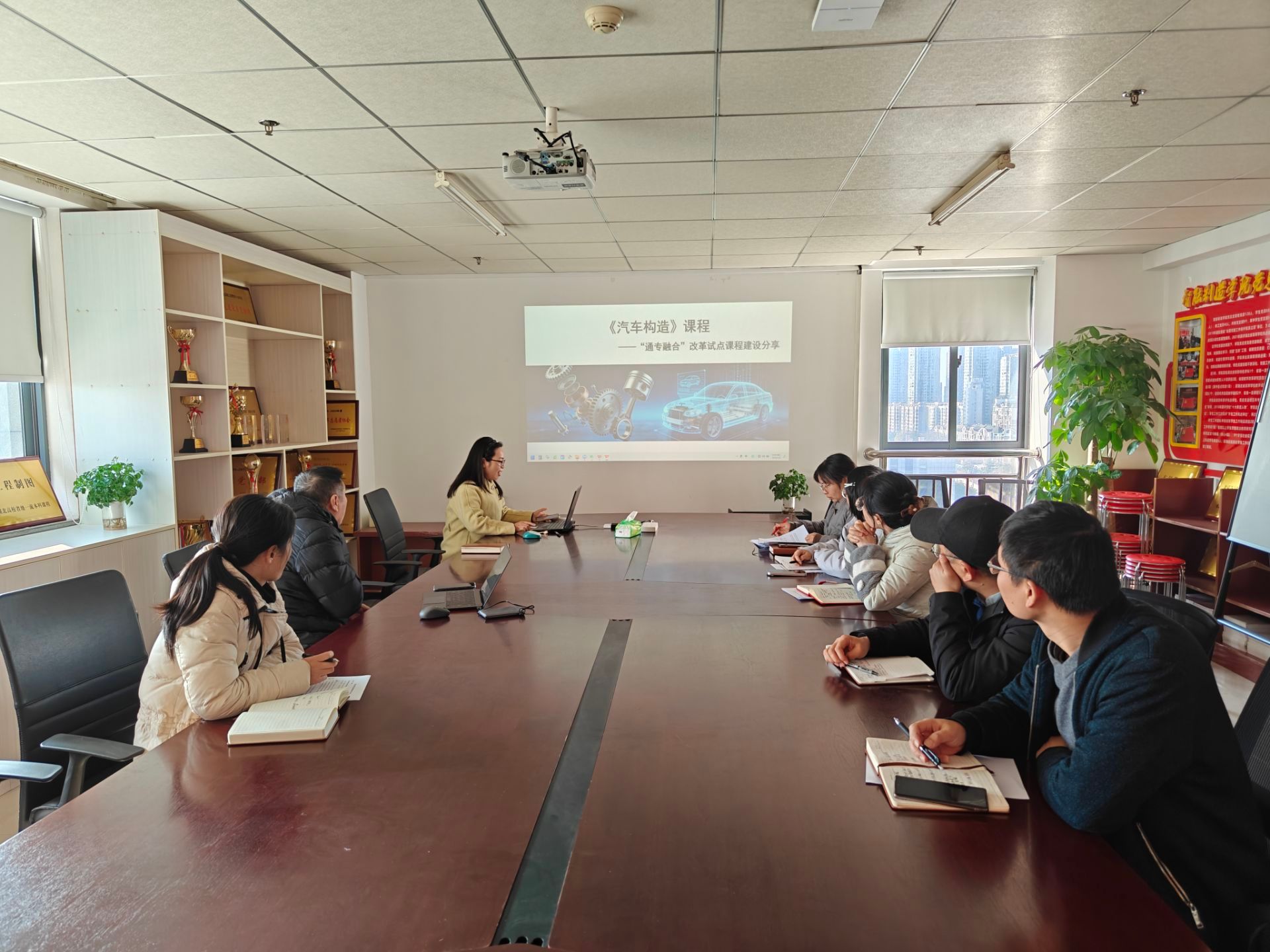 各系部主任也依次分享研讨成果,例如汽服系探讨了《汽车保险与理赔》等课程的通识融合方向;机电系聚焦资源整合与教学模式创新;成型系确定了《金属工艺学》课程的融合点等。