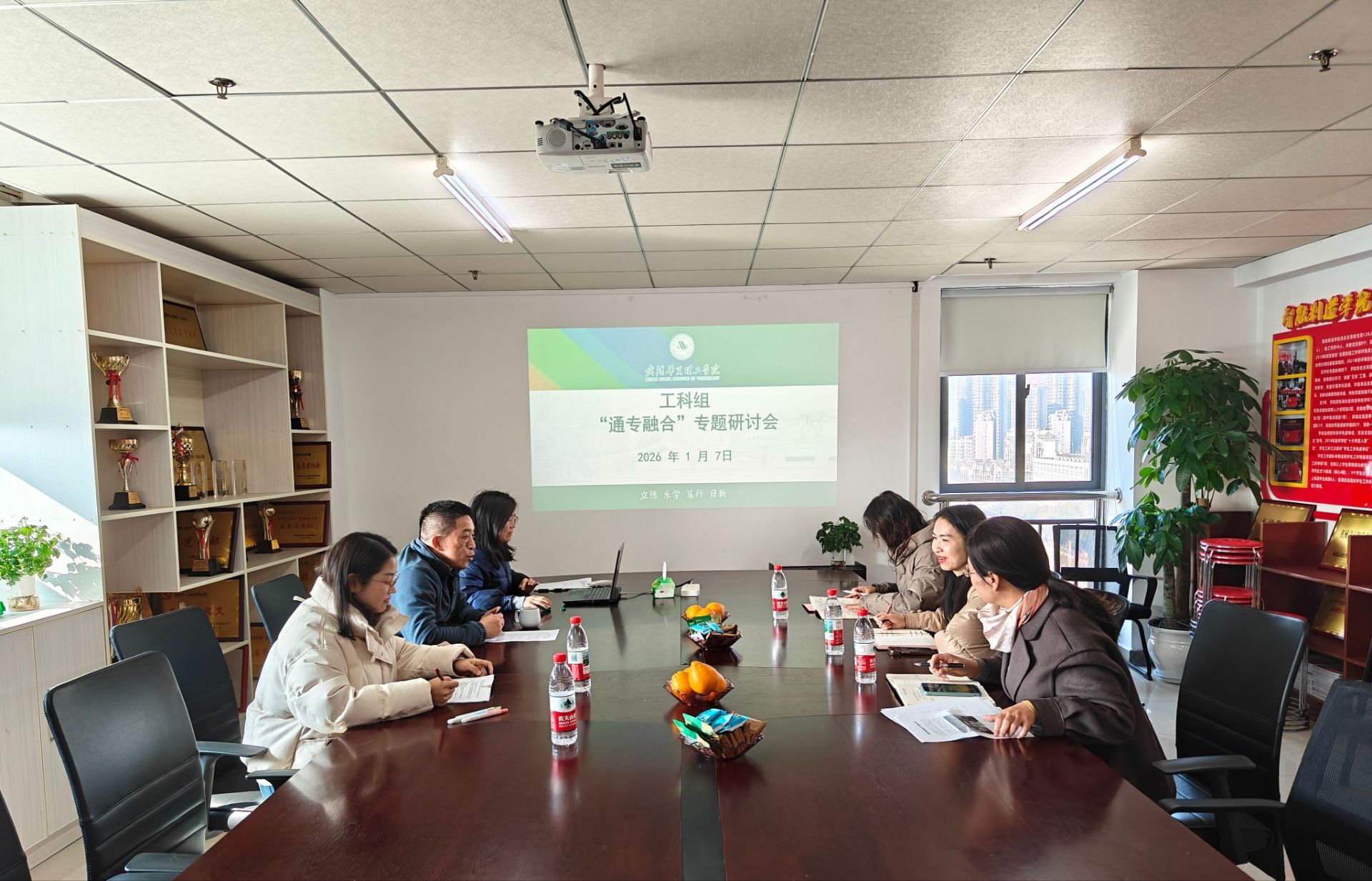 为深入推进通识教育与专业教育深度融合,全面落实学校“一交叉三融合”人才培养特色,1月7日上午10:30,工科组在智能制造学院919会议室召开了“通专融合”专题研讨会。会议由智能制造学院院长齐洪方主持,发展规划与评建中心主任梁梦凡,智能学院、土建学院、信息学院、制药学院副院长参与了此次会议。