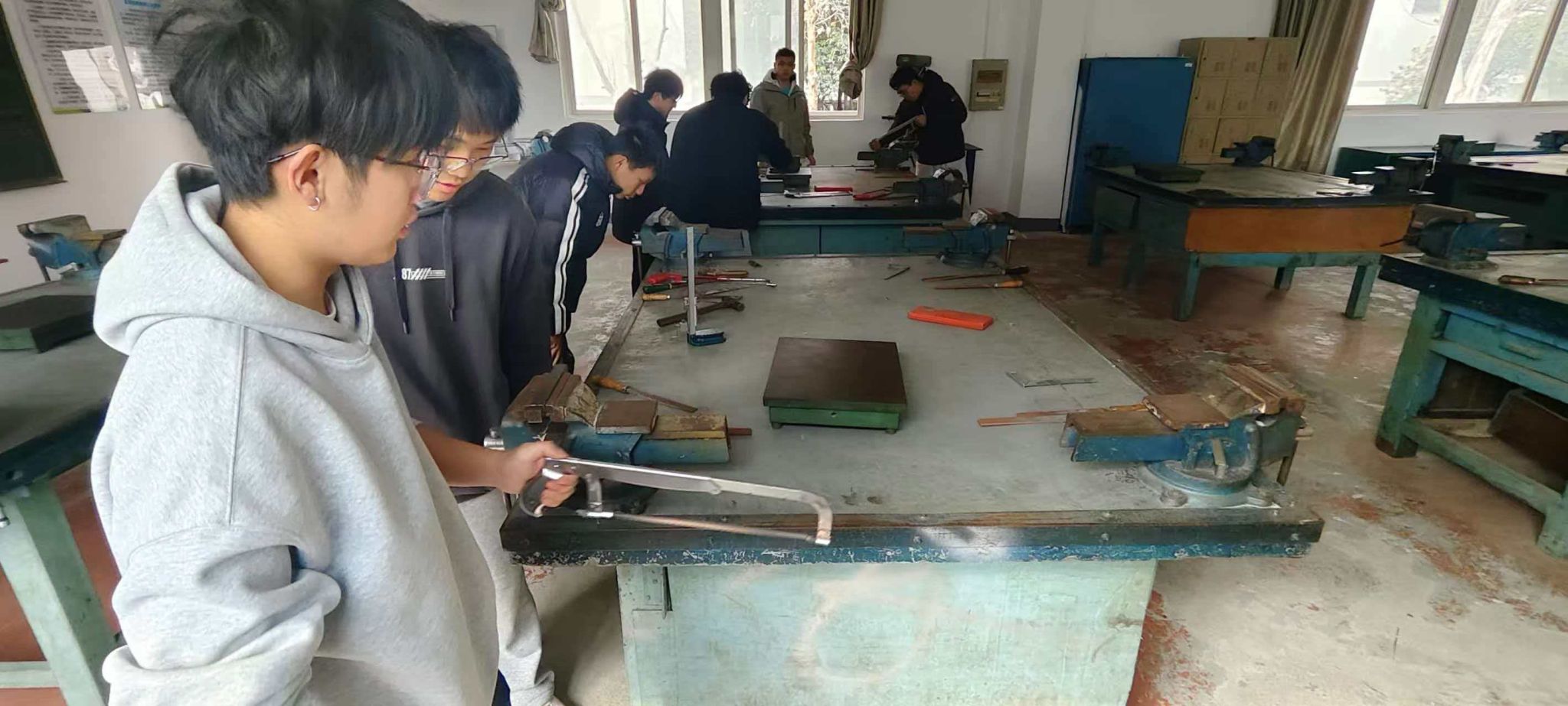 本周,车辆工程1251班全体同学在光谷校区金工实习基地,顺利完成本周的金工实习课程。作为车辆工程专业人才培养的重要实践环节,同学们在设备齐全的基地中严格遵守安全规范,在于指导老师的带领下,从锯割、锉削等基础操作入手,将课堂理论融入实操训练,在“摸、看、做、学”中解锁工程技能,筑牢专业成长根基。