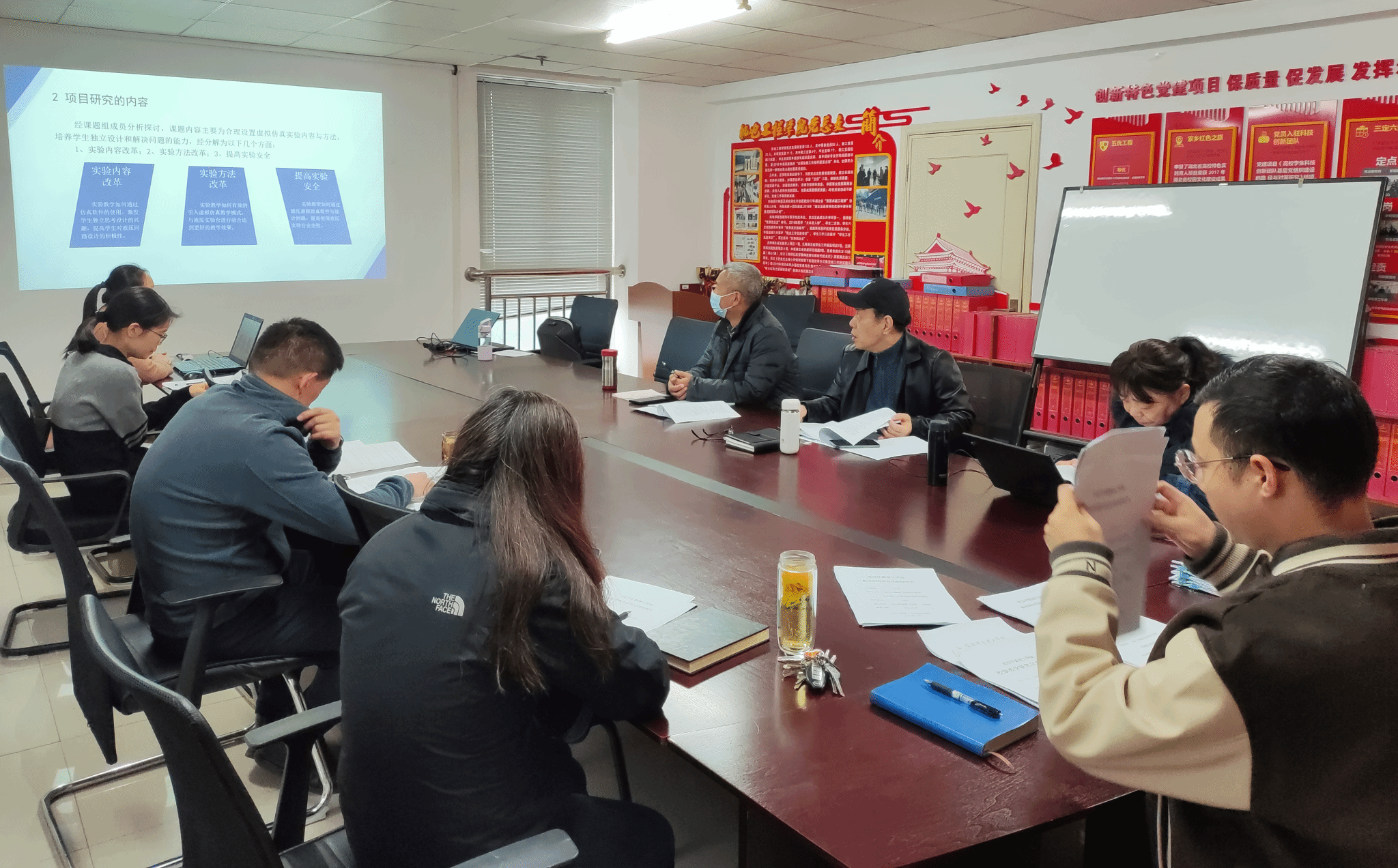 会上,各项目负责人通过PPT演示对项目研究内容、建设具体过程、成果以及建设目标的完成情况进行了介绍,其中《“虚拟仿真”在液压与气压传动课程实验中的应用探索》项目将虚拟仿真引入到液压与气压传动的实验教学中,提升了学生实践动手能力和分析能力。《基于“新工科”理念的车辆工程专业实践教学体系构建与研究》项目对车辆工程专业实践教学体系进行构建与研究。以实际项目为载体,转变专业课和实训等实践教学模式和手段,整合和优化专业实践教学内容,并以综合性竞赛为载体加强实践与理论结合等。《新工科通专融合人才写作能力提升的研究》项目从通识教育、专业教育和毕业设计多方面重视学生写作能力的培养,提高了学生的语言组织和表达能力、写作能力以及逻辑思维能力。