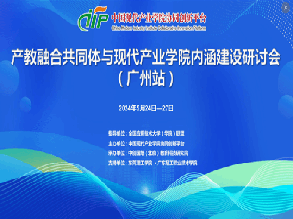 2024年5月24日至27日,由全国应用技术大学(学院)联盟指导、中国现代产业学院协同创新平台主办、中创国培(北京)教育科技研究院承办、东莞理工学院·广东轻工职业技术学院支持的“产教融合共同体与现代产业学院内涵建设研讨会”在广州举办。智能制造学院执行院长齐洪方教授带队,机械电子工程系主任叶仁虎老师参加了本次研讨会的线上会议。