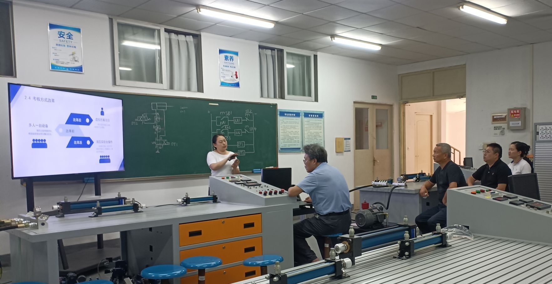 为加强实践教学改革的科研创新,提升实践教师的专业水平,智能制造学院实验中心于6月25日中午12:00,在流体传动与控制实验室开展了实验教学研讨活动。本次活动由吴娇老师主讲,主要深入探讨了虚拟仿真技术在液压传动实验中的创新应用。