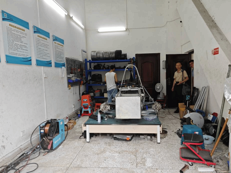交流结束后,李媛和刘俊老师受海南大学李教授的邀请参观了智能车联网实验室。实验室内,先进的设备和技术展示了海南大学在智能网联汽车领域的研究成果。随后还参观了南海方程式赛车队整车装备实验室。赛车队的队员们正在紧张地进行赛车的组装和调试工作。