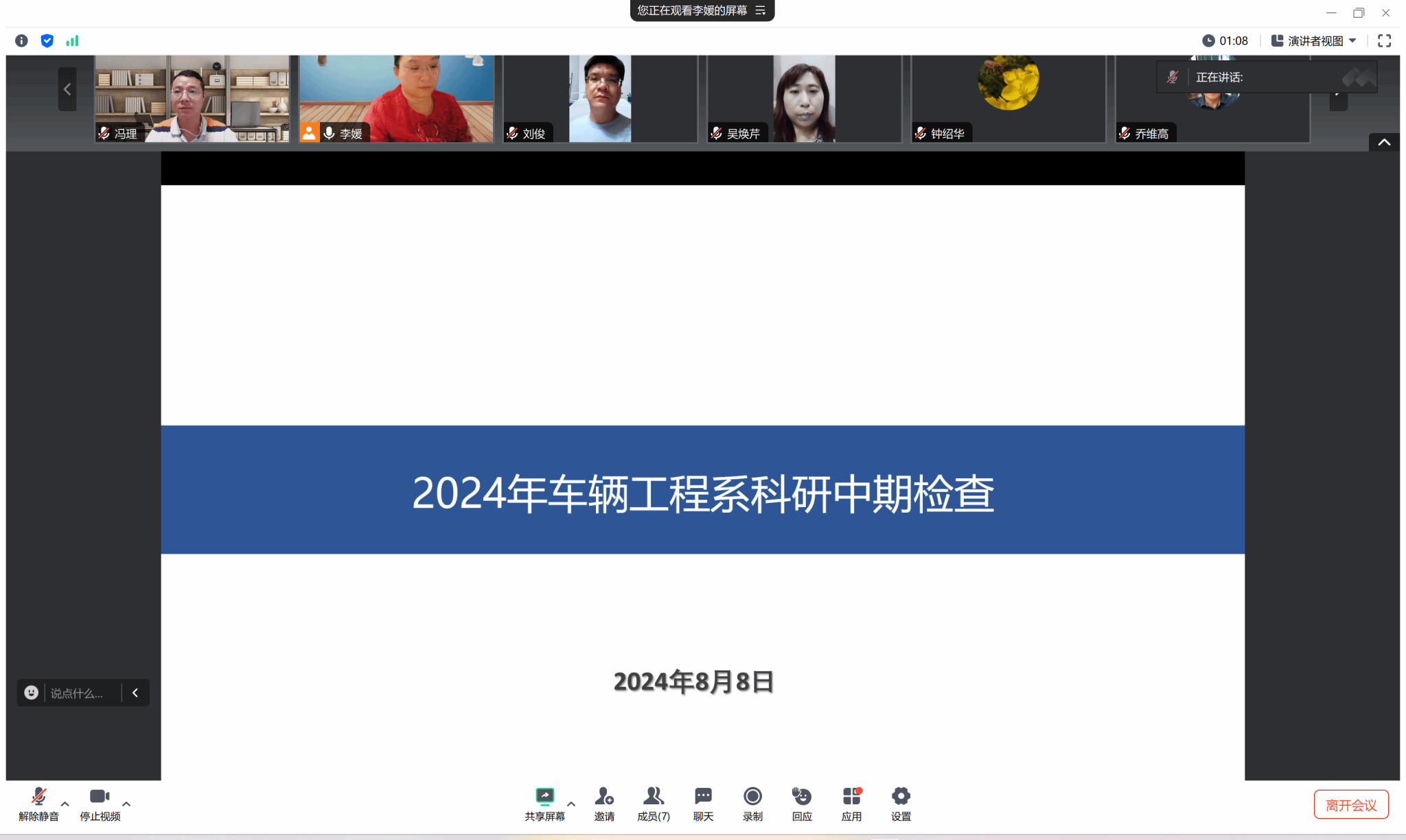 8月8日晚上22:00,车辆工程系召开科研中期检查线上会议,车辆全体教师参会,会议由智能制造学院副院长和车辆系主任李媛主持。会议围绕科研项目的进展情况以及所遇到的问题进行了汇报交流。