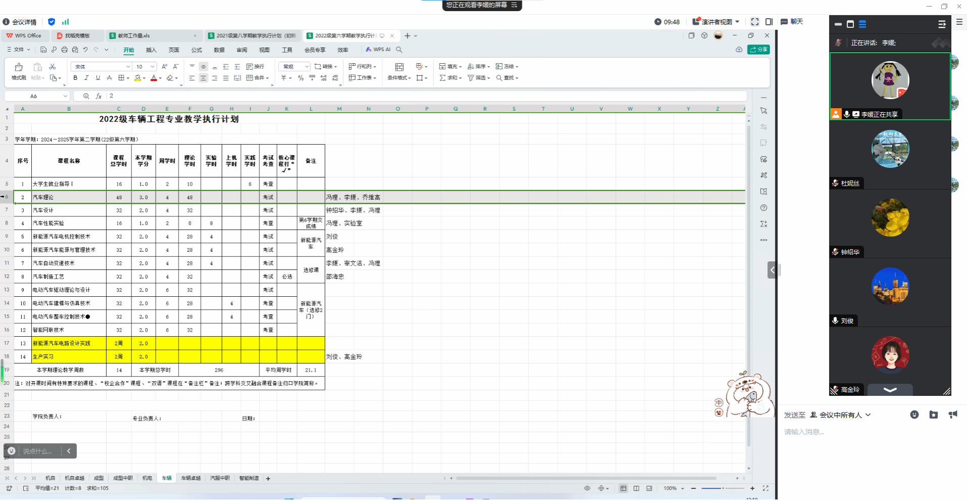 为进一步确保各项教学工作扎实有序推进,9月25日中午12:40分,车辆工程系召开了教学工作例会。会议由车辆系主任李媛老师主持,与会人员包括车辆全体老师。会议的主要内容包括课程知识图谱的申报、西浦全国大学生教学大赛准备及下学期课程安排等事项。
