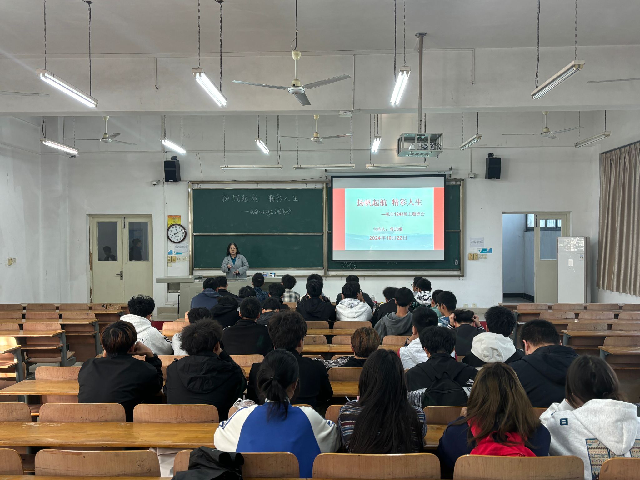 10月24日,为了激发刚刚踏进大学校园的大一新生们的学习热情,让同学们更好地规划未来四年的大学生活,营造积极进取、奋发向上的班级氛围。机自1243班在教学楼1-101在召开主题班会-扬帆起航,精彩人生。会议由机自1243班导师班主任曾志娥主持。