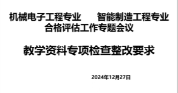 12月27日下午2:00,机电-智能制造联合组全体教师通过腾讯会议召开了合格评估工作专题会议,会议主题为教学资料专项检查整改要求。本次会议由机电系主任叶仁虎老师主持。