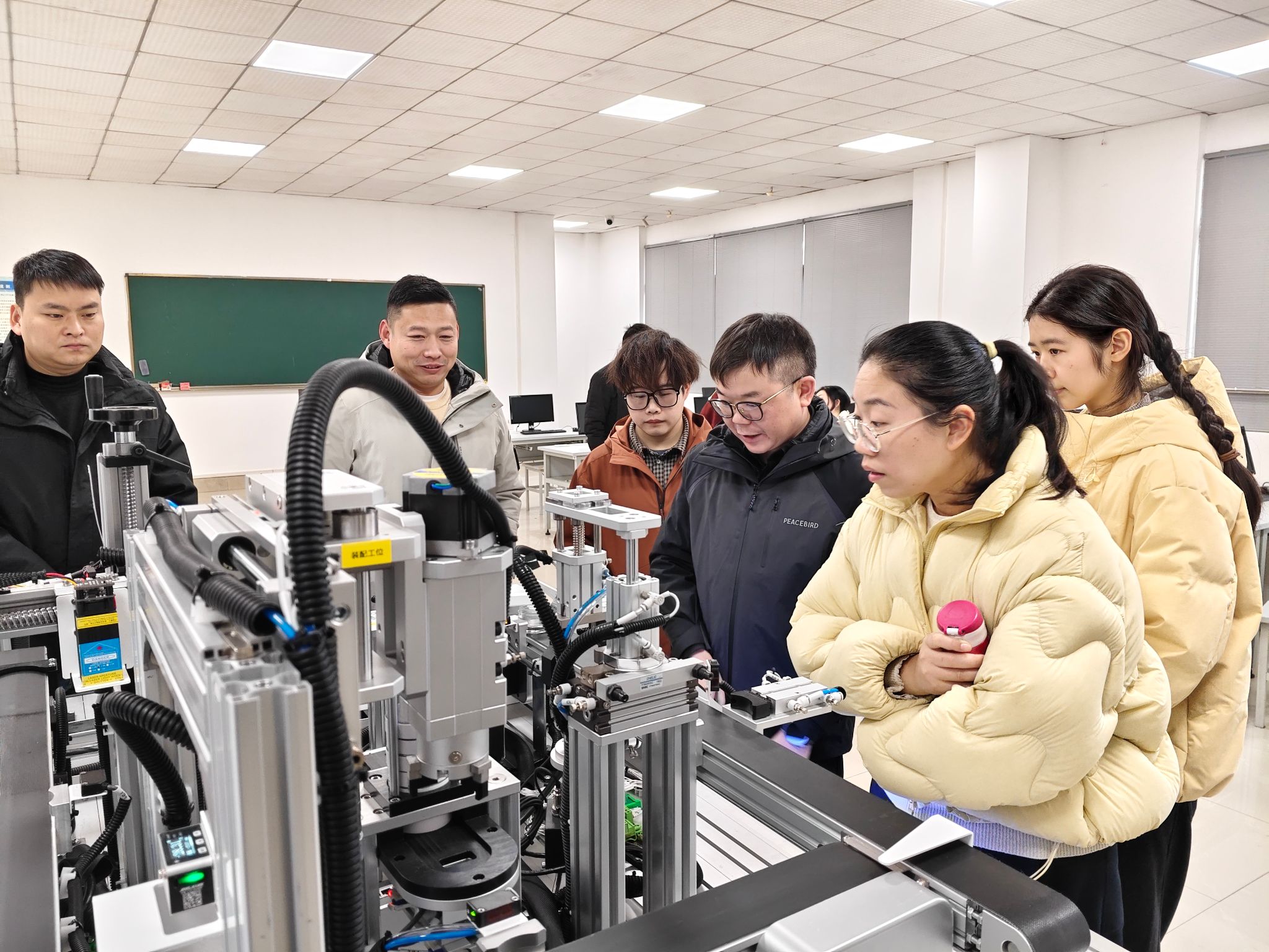 首先,明材方面介绍了MES制造执行系统主要功能与操作、MINT工业数字孪生开发工具及云平台基本使用方法,并以风机转动控制、传输线物料台运动为例,分别介绍了PLC电气控制、数字孪生建模等流程与方法;然后,澳倚蓝方面讲解了颗粒灌装生产线的基本组成、流程控制及使用方法,进行了生产线操作演示,相关老师独立完成了生产线操作应用;最后,相关系部老师与企业技术人员一起针对数字孪生在MES、PLC、智能制造系统综合设计、智能制造生产线综合设计等相关课程实践教学中的应用进行了深入探讨,明确了相关课程实践教学内容与方式,进一步落实了我院数字孪生相关课程的产教融合建设。