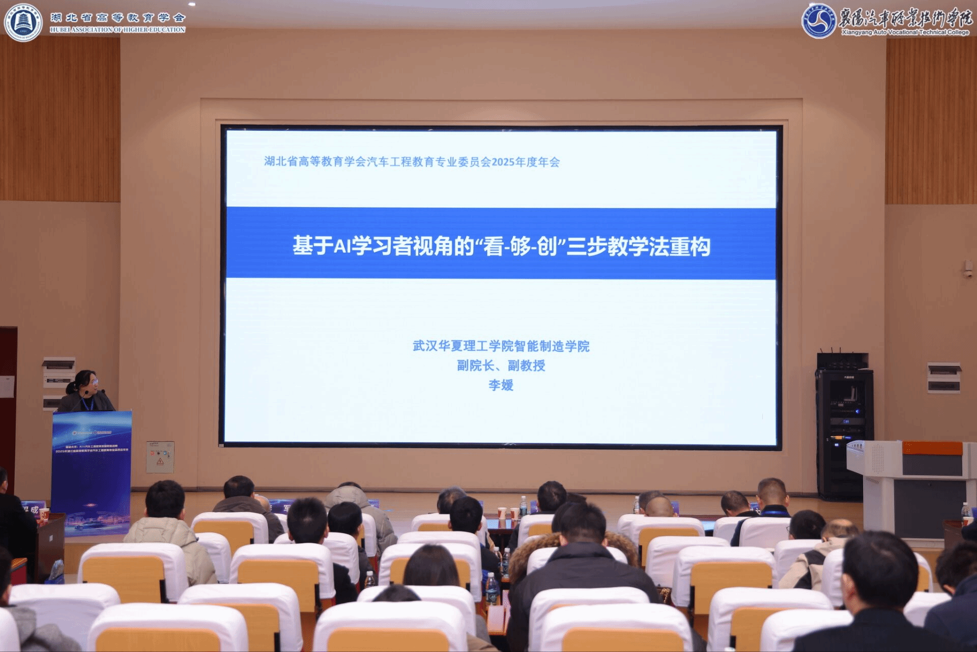 12月21日,湖北省高等教育学会汽车工程教育专业委员会2025年会在湖北襄阳举行。本次会议汇聚了武汉理工大学汽车工程学院院长颜伏伍、湖北汽车工业学院院长胡明茂等全体委员,以及全省汽车类本科高校、职业院校、行业企业的百余名专家学者、教师及企业代表,围绕“智启未来:AI+汽车工程教育数智赋能战略”展开深入研讨。会上,湖北省高等教育学会汽车工程教育专业委员会常务委员、我校智能制造学院副院长李媛以《基于AI学习者视角的“看-够-创”三步教学法重构》为题做了主题报告,将我校AI赋能教学的方法及成效面向全省汽车类专家进行了推广,赢得了与会代表的广泛认可。