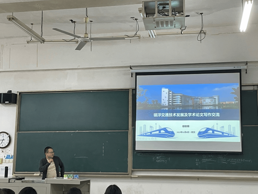 11月8日晚上6:30,车辆工程专业2011级校友,同济大学国家磁浮交通工程技术研究中心博士后,西南交通大学胡俊雄博士为我院车辆工程卓越工程师班车辆1202班、车辆1211班以及大二、大一学生分享“磁浮交通技术发展及学术论文写作”。讲座期间我校许多师生及往届校友也纷纷前来学习交流,整个会议持续近1个半小时。