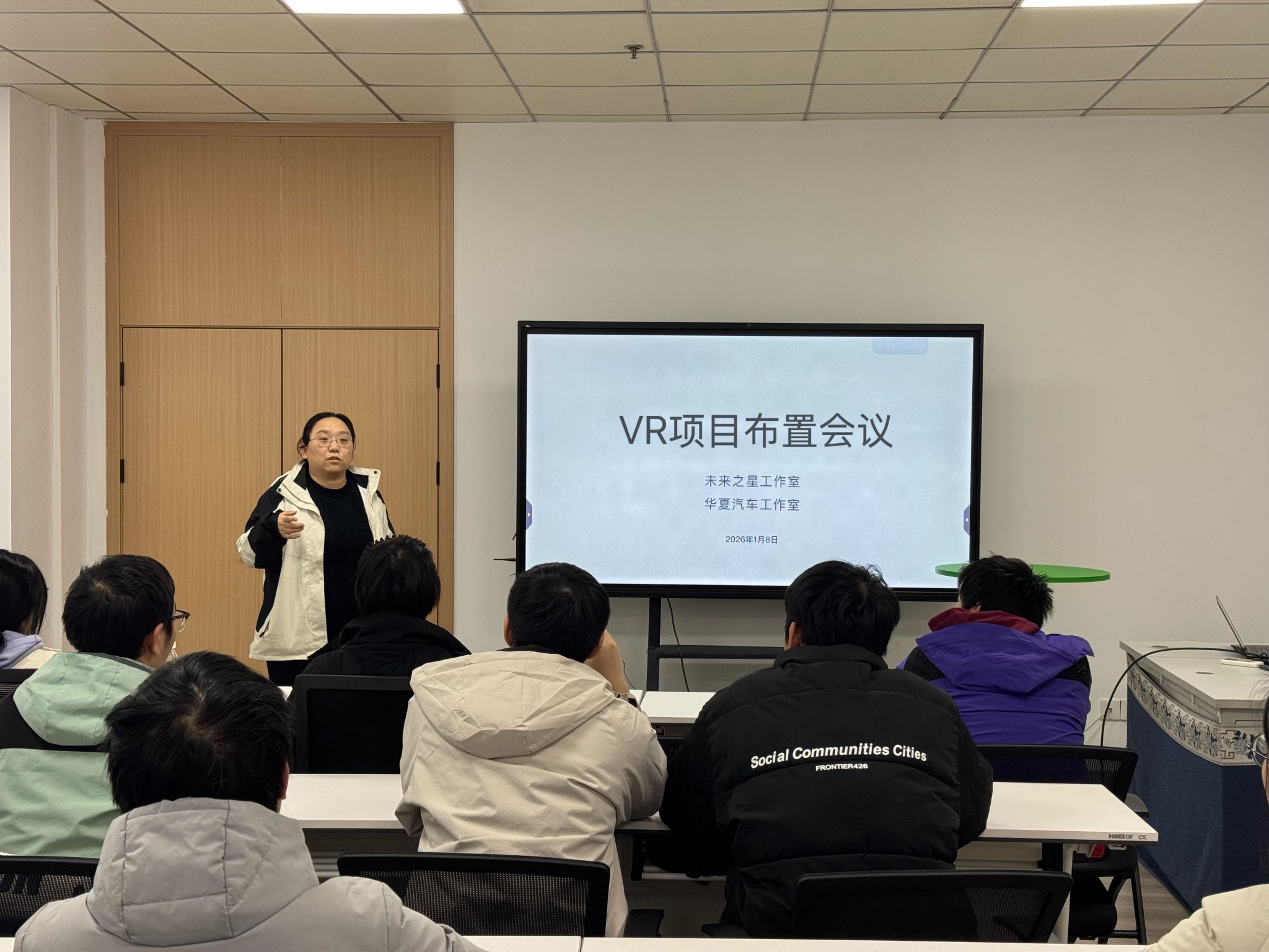 为切实转化前期3D建模与虚拟仿真软件培训成果,推动VR技术在汽车相关专业教学与实践中的深度应用,1月8日下午四点,由未来之星与华夏汽车工作室联合组织的VR项目布置会议顺利召开。会议由汽服专业教师刘莹颖主持,李媛副院长莅临现场指导,车辆23级、24级及汽服23级共计10余名学生线下参会。