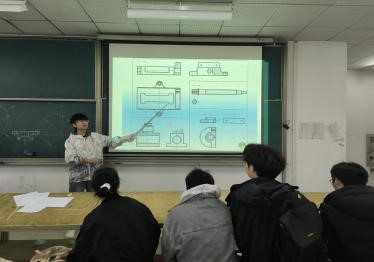 课程伊始,机自1246班的朱慧仪凭借丰富的专业知识和清晰的讲解,迅速抓住了同学们的注意力。她从工程制图的基本概念入手,用生动形象的示例,将抽象的理论知识变得通俗易懂,让学们对工程制图有了初步的认识。