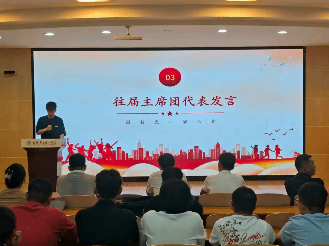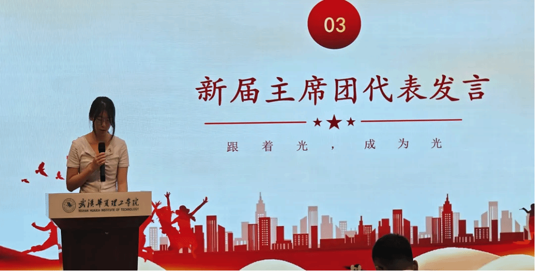 紧接着,新旧主席团代表上台轮流发言。原主席团代表谢祥龙上台发言,他首先回顾了过去一年与团队共同开展的各项工作,感谢学院领导、老师的悉心指导以及同学们的理解与配合,并分享了在组织活动、服务同学过程中的收获与感悟。同时,他对新一届主席团寄予殷切期望,鼓励他们接续奋斗,推动学院学生工作再上新台阶。随后,主席团学生代表林梦馨怡上台代表新一届主席团,对学院领导、老师的信任以及同学们的支持表示衷心感谢,并承诺将带领团队牢记服务宗旨,以饱满的热情投入工作,在学风建设、活动组织、权益维护等方面主动作为,不辜负大家的期望,努力为学院学生工作贡献新力量。