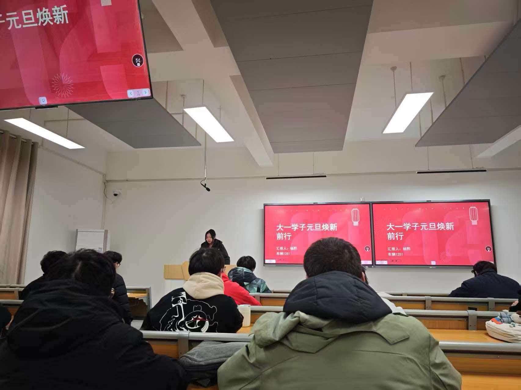 为迎接元旦佳节,引导大一学子总结过往、展望未来,12月29日,车辆1251班在教室开展“岁序更替,焕新前行迎元旦”主题团课,本次团课由杨熙主讲,全体同学参与其中。