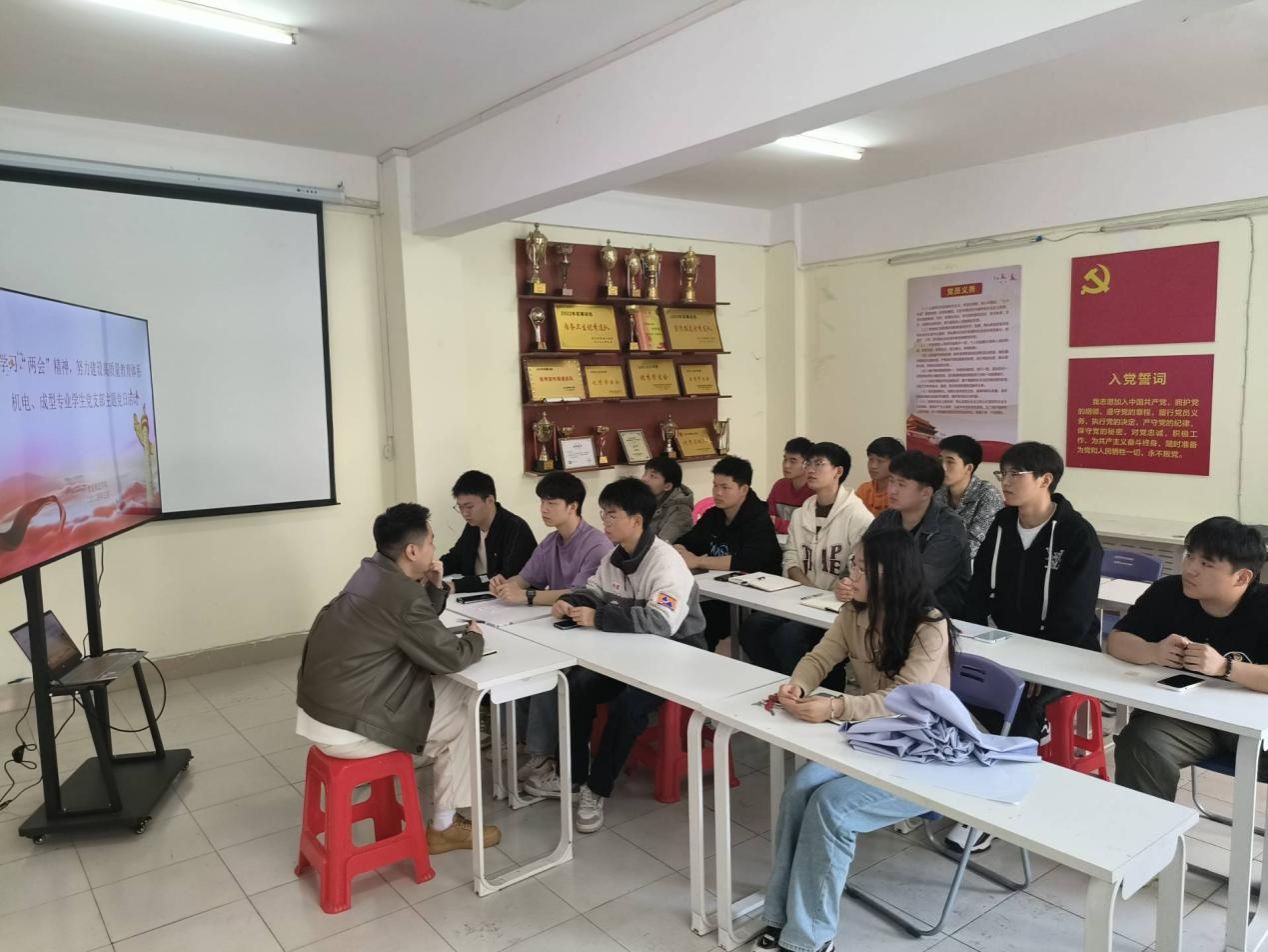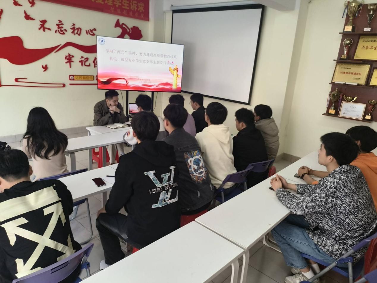 2024年3月22日,我院机电、成型专业学生党支部在二号楼学生社区开展主题党日活动。此次主题党日旨在深入学习两会精神,提高党员的政治觉悟和思想水平。会议由机电专业学生党支部书记朱至立主持,成型专业学生党支部书记李振锋,机电、成型支部党员参加会议。
