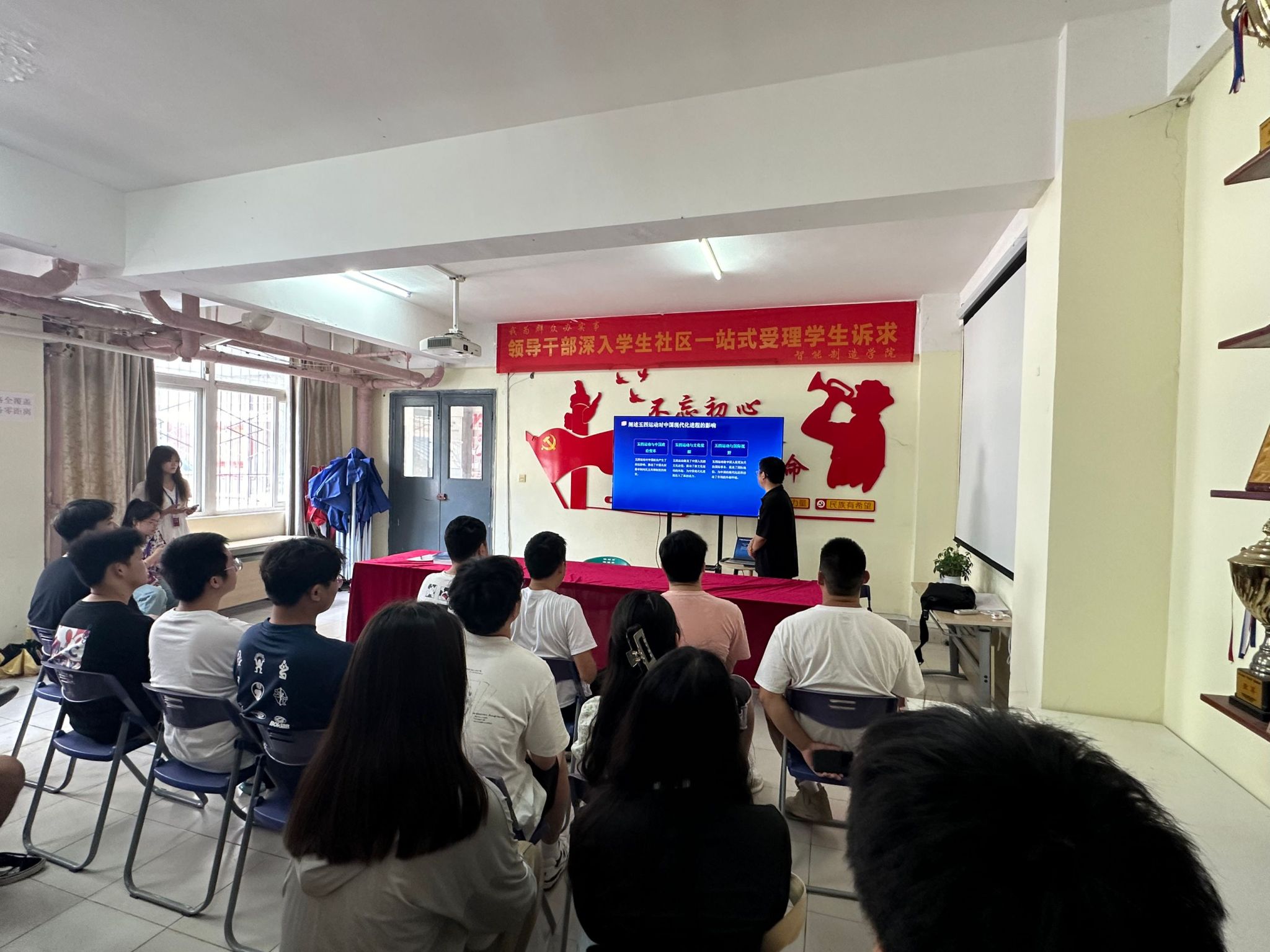 5月24日,我院党员服务站在学生社区开展了五月的理论学习会议,会议主题为“传承五四精神,做新时代好青年”。会议由党员服务站负责人杨柳主持,党员服务站全体成员参加会议。