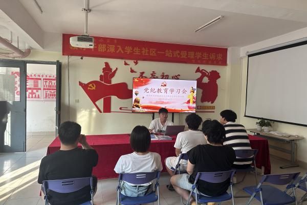 2024年5月23日18点30分,在二号楼学生社区开展党纪学习教育会议,会议由支部书记周立华主持。