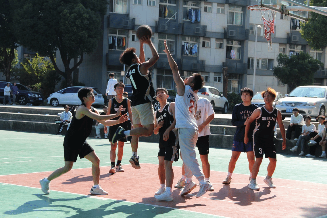 此次赛事采用多队同比制,比赛分为上下半场,每半场时长13分钟,除暂停外时间不停表,中场休息 3 分钟,多支队伍同时展开激烈角逐。尖锐的哨声响起,高高抛起的篮球瞬间点燃了全场的澎湃激情,篮球赛就此正式拉开帷幕。赛场上,同学们抢球、断球、防守、进攻,配合默契。他们严守硬对,激烈争夺,以默契的传球和完美的配合,展现出非凡的篮球技艺。